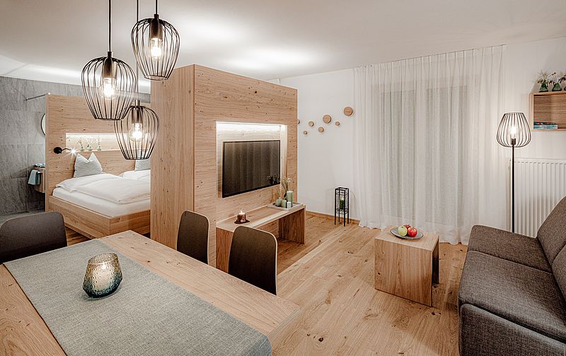 Inspired by the local grain, the lodge exudes a grounding, natural atmosphere and inspires with natural materials and stylish design.